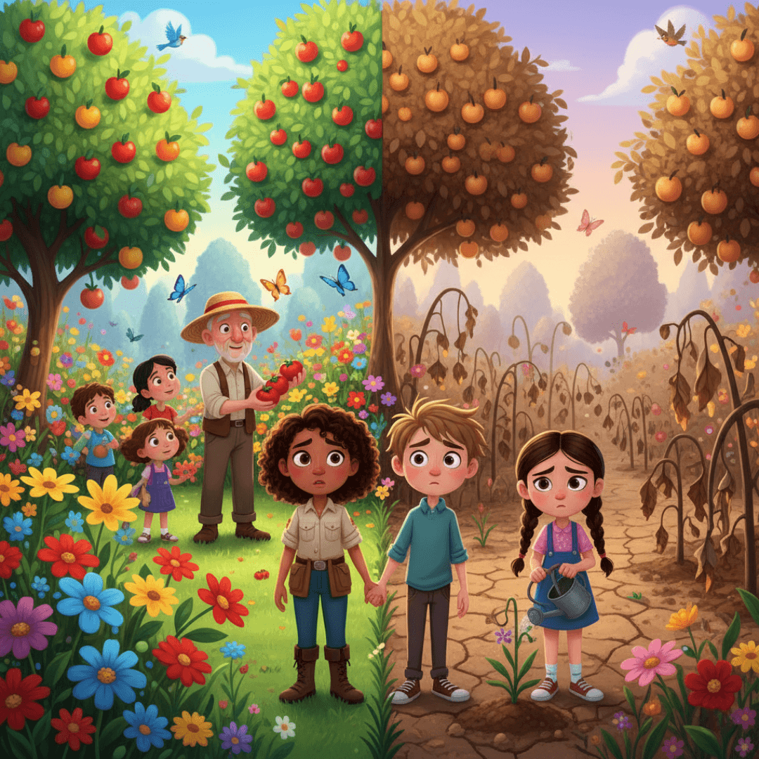 Half the garden blooms with life. Half is brown and dying. Why? The answer reveals a secret about sharing that most adults never discover.