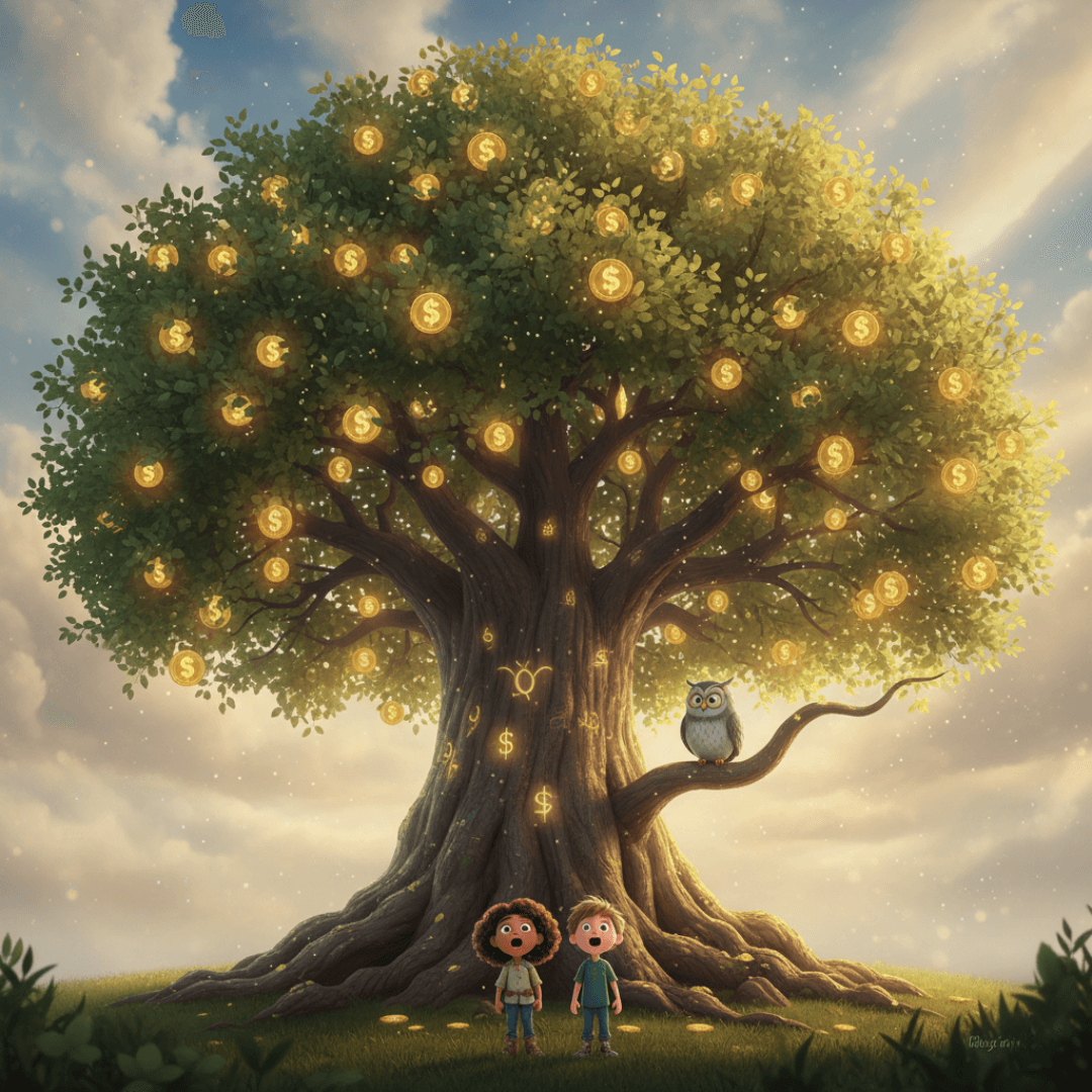 How did one coin become a forest of golden fruit? Professor Hoot reveals the ancient secret of compound growth, and why time is your child's secret weapon.
